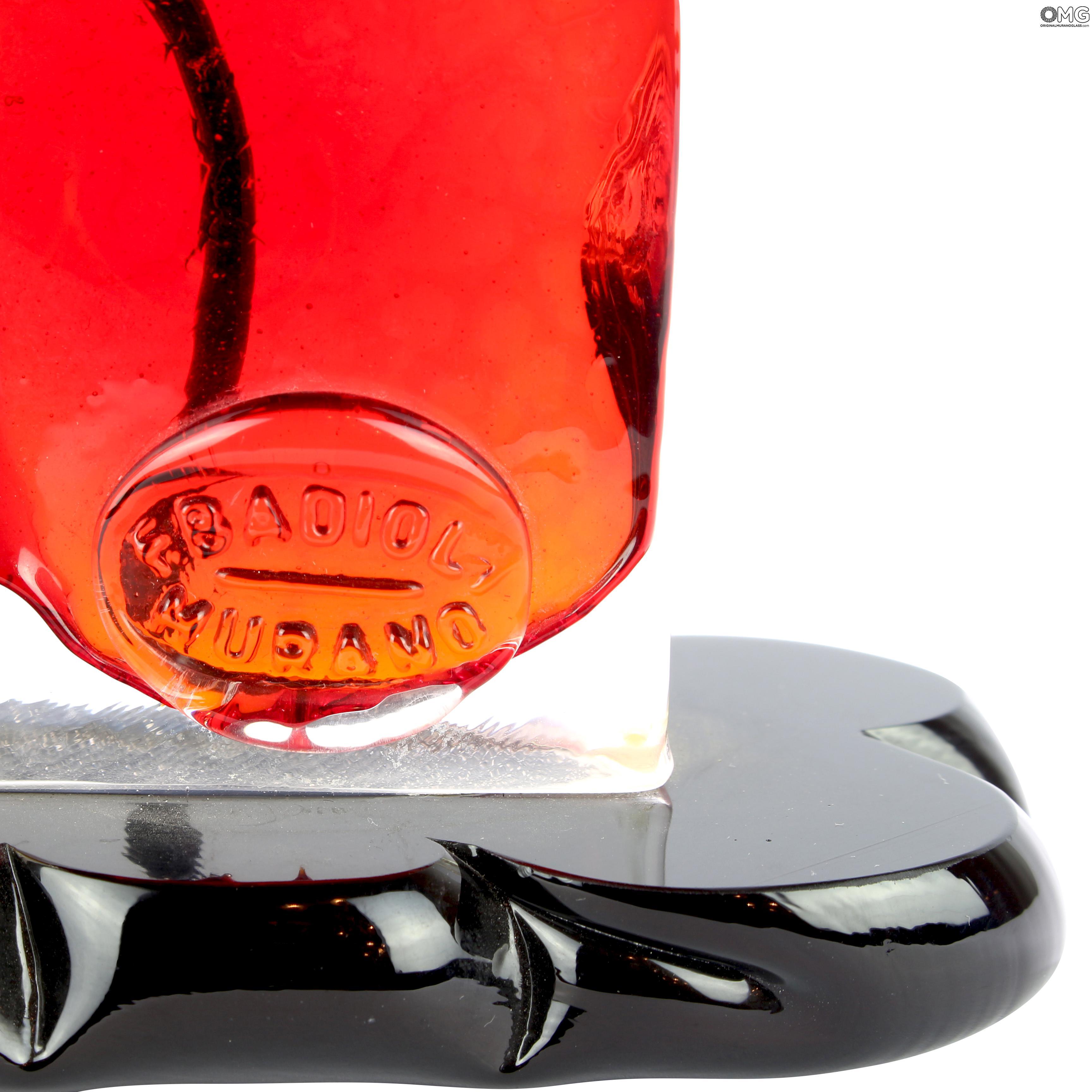 Great sculpture with modern and artistic design inspired by the cubism art style of the beginning of the XX century, made especially famous by Picasso. This original Murano glass sculpture is made using only freehand modeling technique.