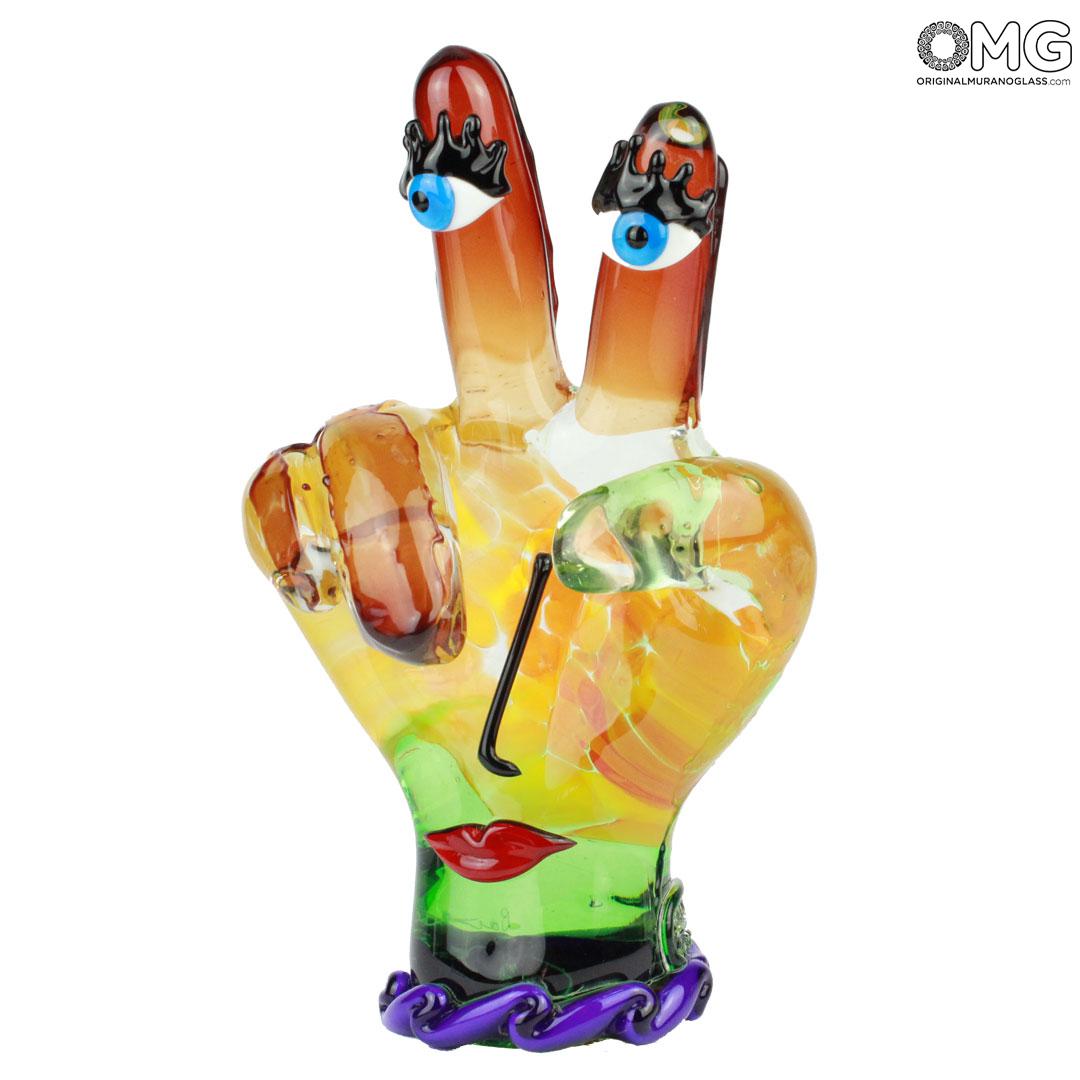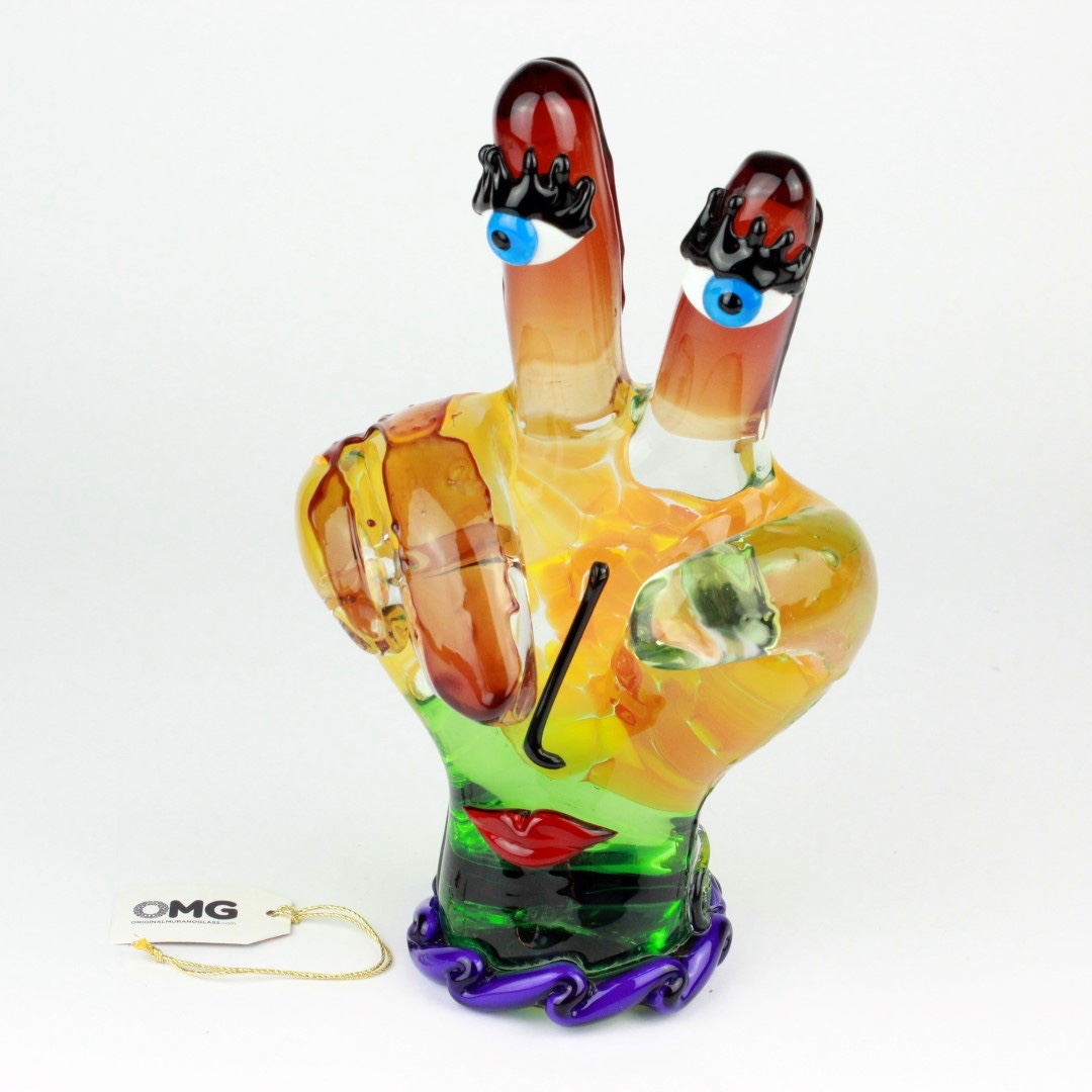 The statue is authentic Murano Glass creation crafted entirely by hand using only traditional glass-making methods in a prominent Murano Glass Factory, specializing in modern art pieces. The Hand figurine features the etched signature of the master, and is accompanied by the certificate of authenticity. Because each item is a unique work of art made by hand, slight variations of colors, patterns, sizes, and shapes are possible.