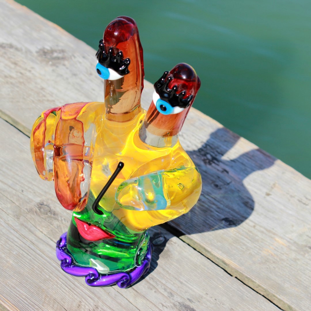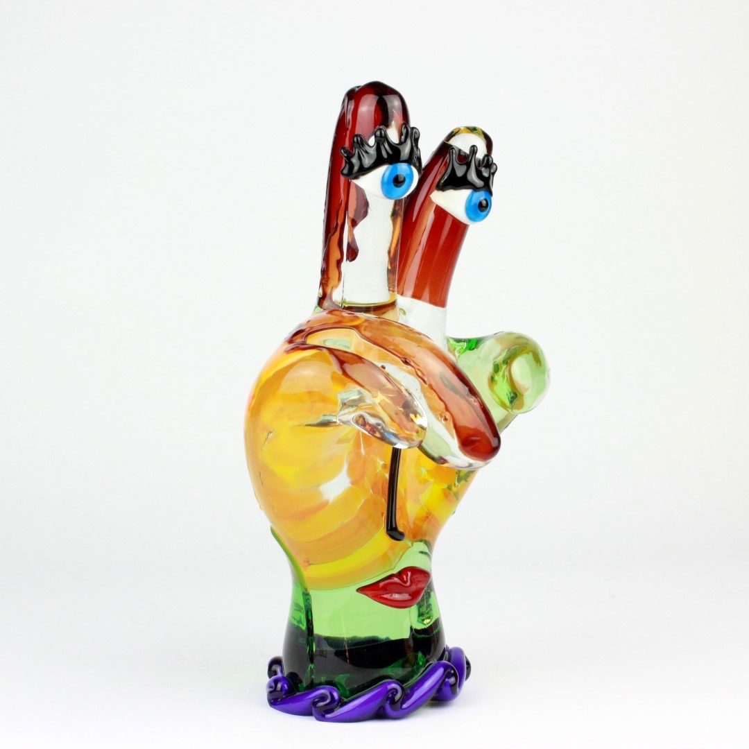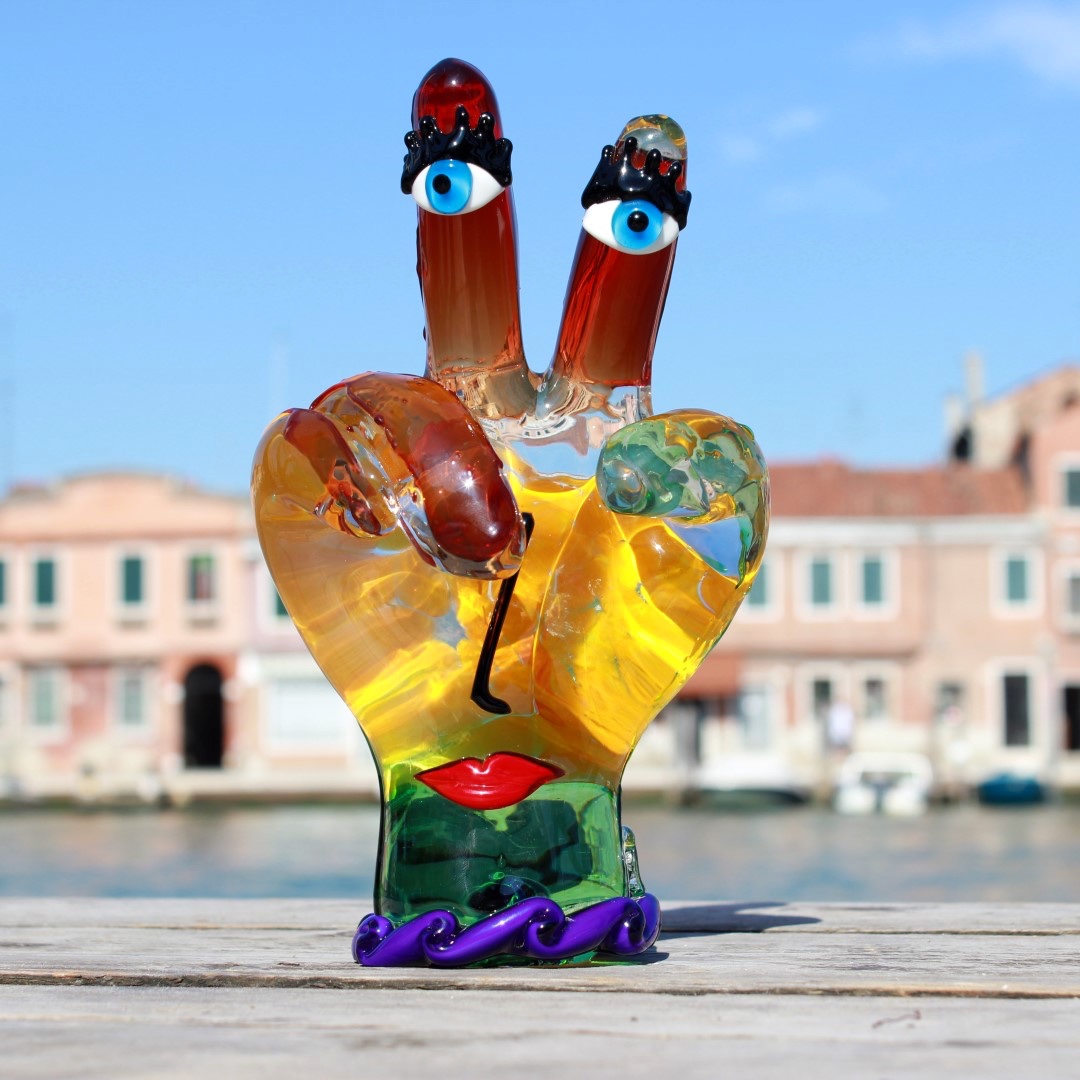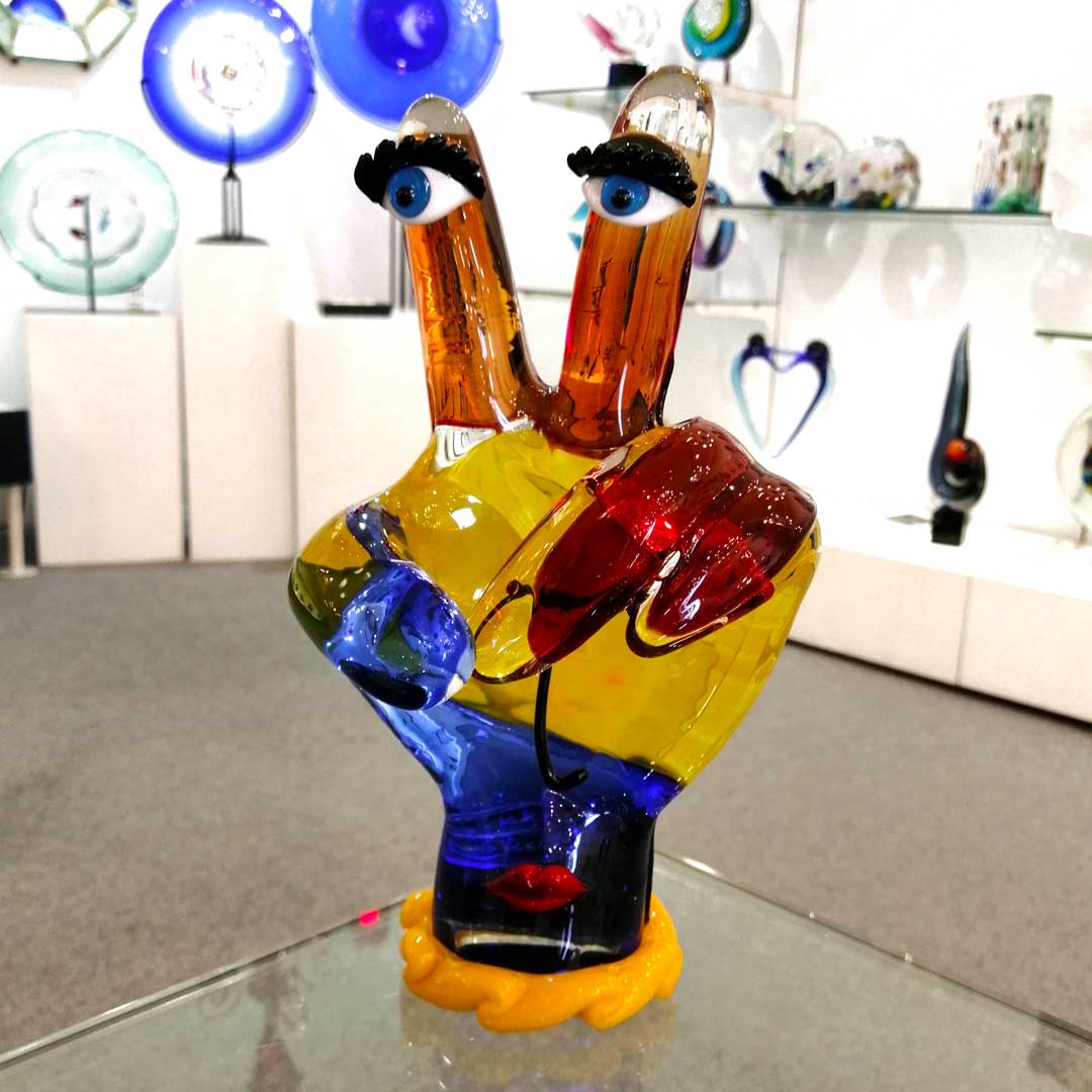 Murano Glass art gets an unexpected contemporary twist in this unique Picasso Hand sculpture. In a tribute to the most famous and revolutionary artist of the 20th century, Pablo Picasso, the inventive Murano masters created this Murano Glass sculpture, which reflects Picasso’s abstract style and avant-garde approach to art. The Picasso-inspired hand represents surrealist movement in art, with bright colors and face features. The rich deep colors of red, yellow, orange and blue, and inquisitive blue eyes convey a sunny mood and atmosphere of liberation from the canons of art and tradition. Authentic Murano Glass Picasso figures are some of the most valuable art glass pieces found only in a few select galleries in Venice. They make a unique gift for anyone who loves modern art, admires Pablo Picasso and his style, and appreciates Murano Glass and Venetian craftsmanship.
