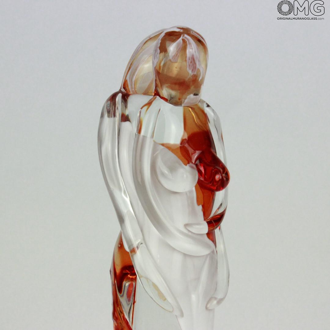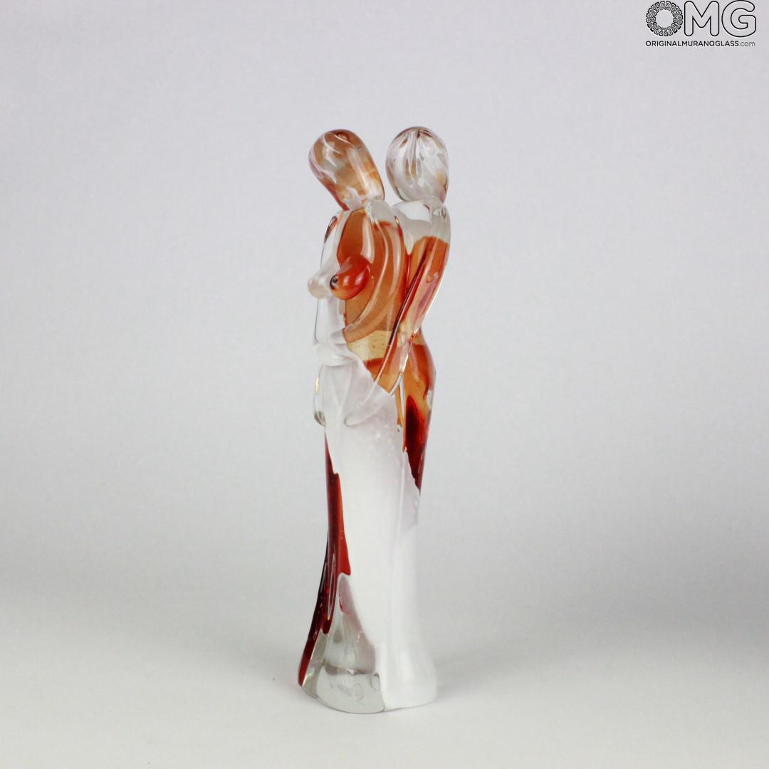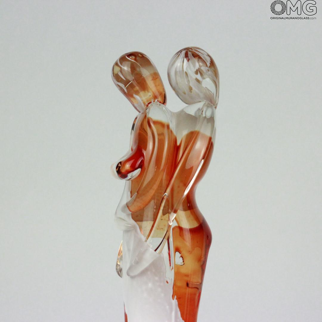Escultura de los enamorados - OneLove - decoración naranja -. Vidrio de Murano original OMG