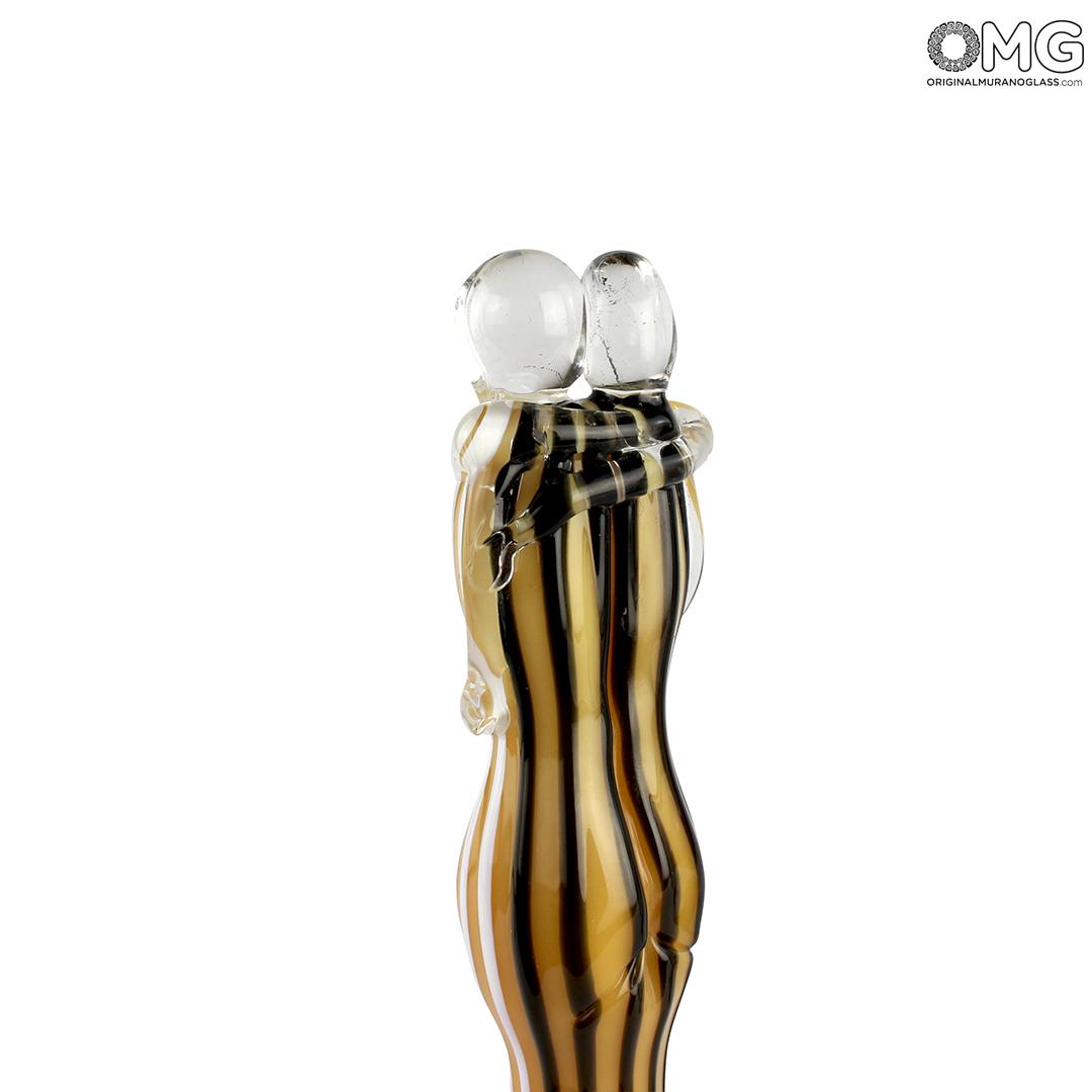 Lovers Sculpture - Orange Filigree - Murano Glass