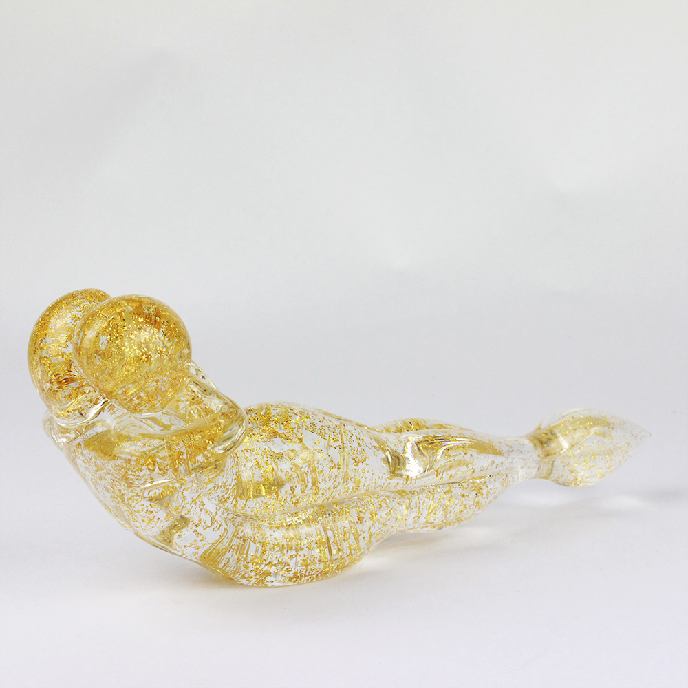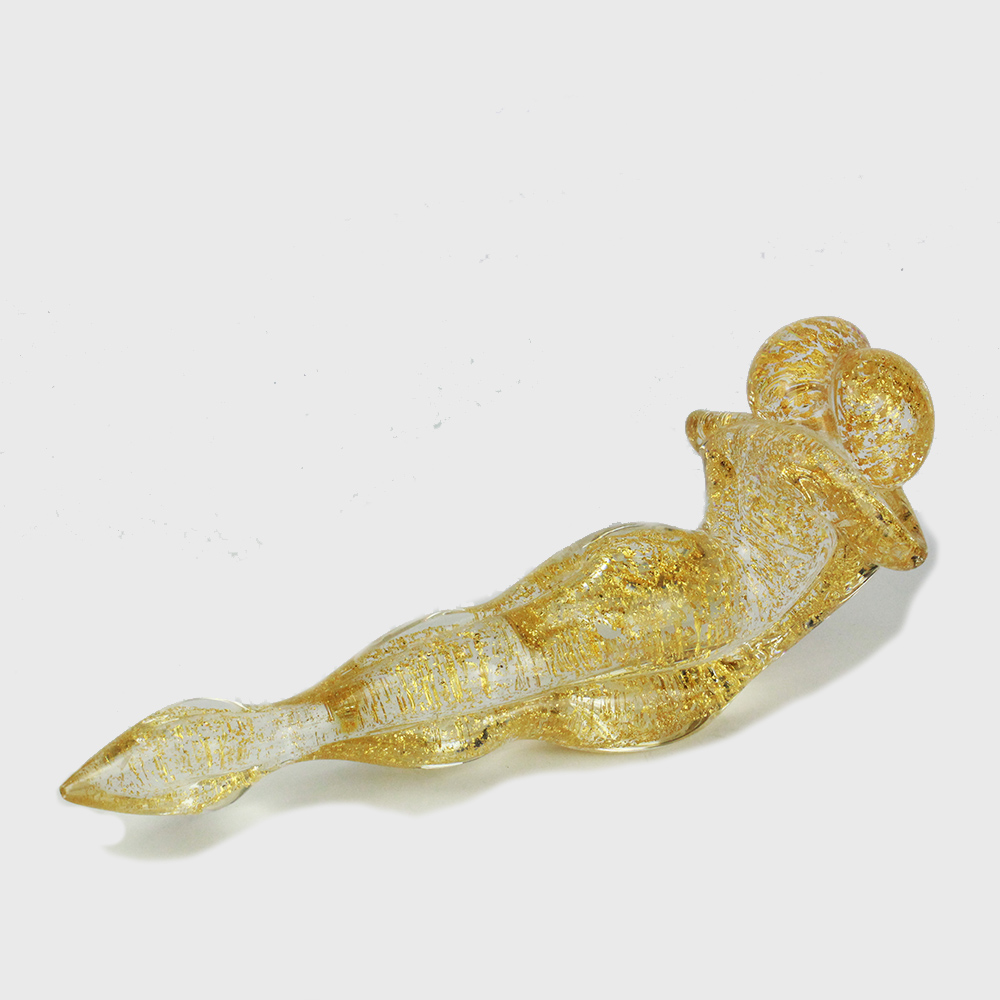 Lying Lovers bust sculpture handmade with the technique of warm glass modellation. Handcraft in glass and gold molten signed by the master Andrea Tagliapietra.