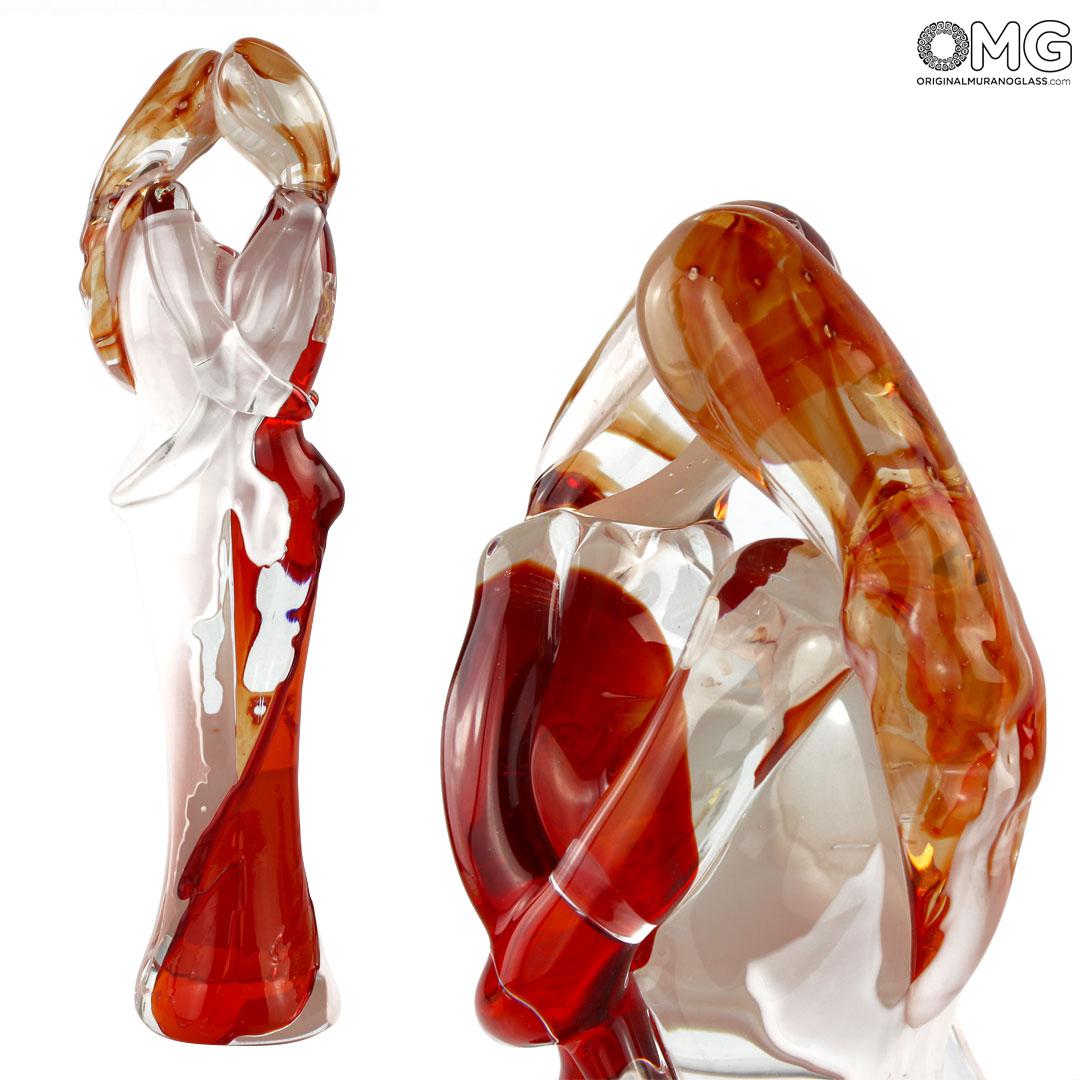 Lovers bust sculpture made with the technique of warm glass modellation. Glass is molten in different colors. Handmade for our selection of lovers sculptures.