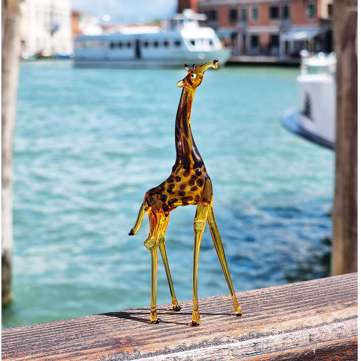 Because it is entirely handmade, small variations in color and size make every giraffe figurine unique, a true sign of authentic Murano craftsmanship.