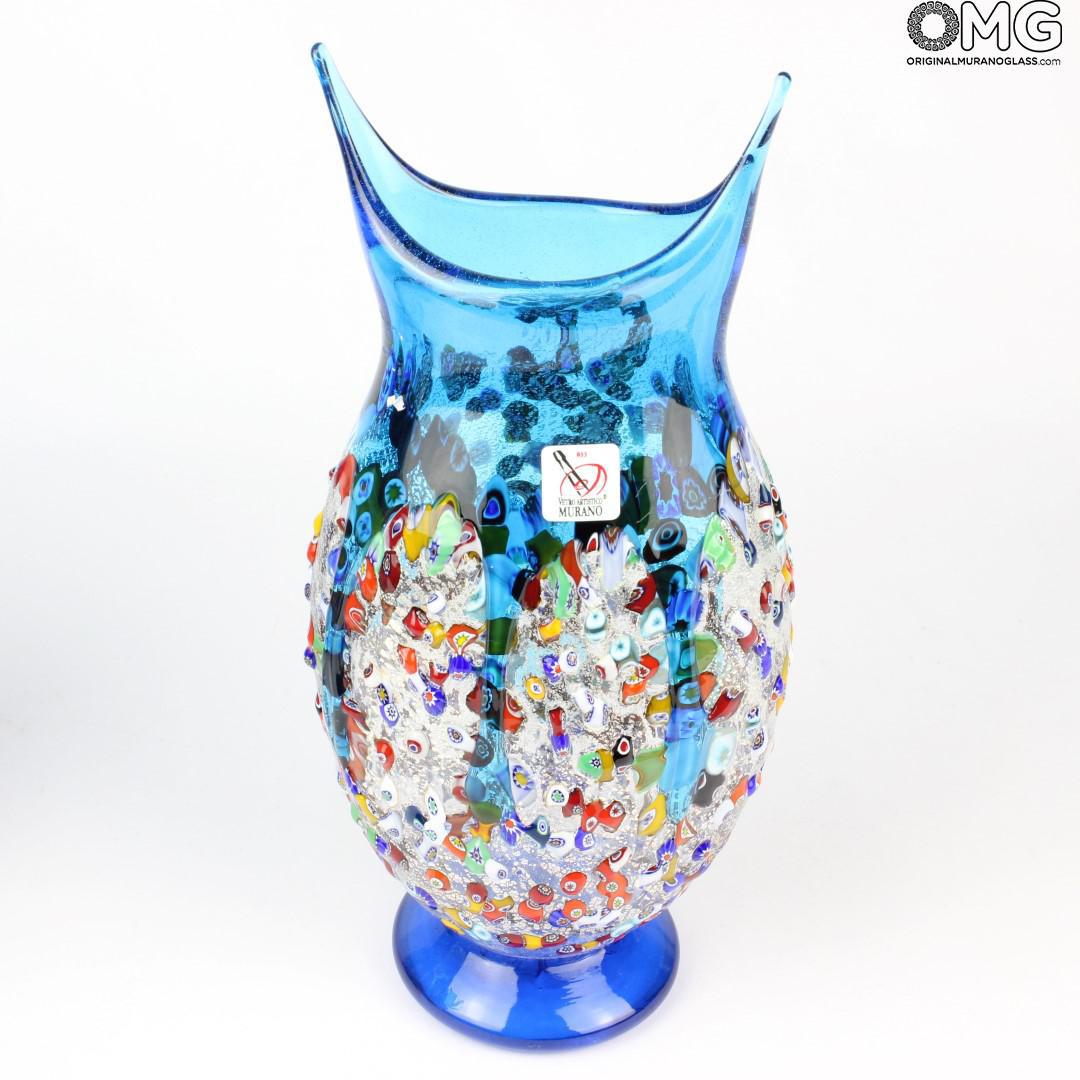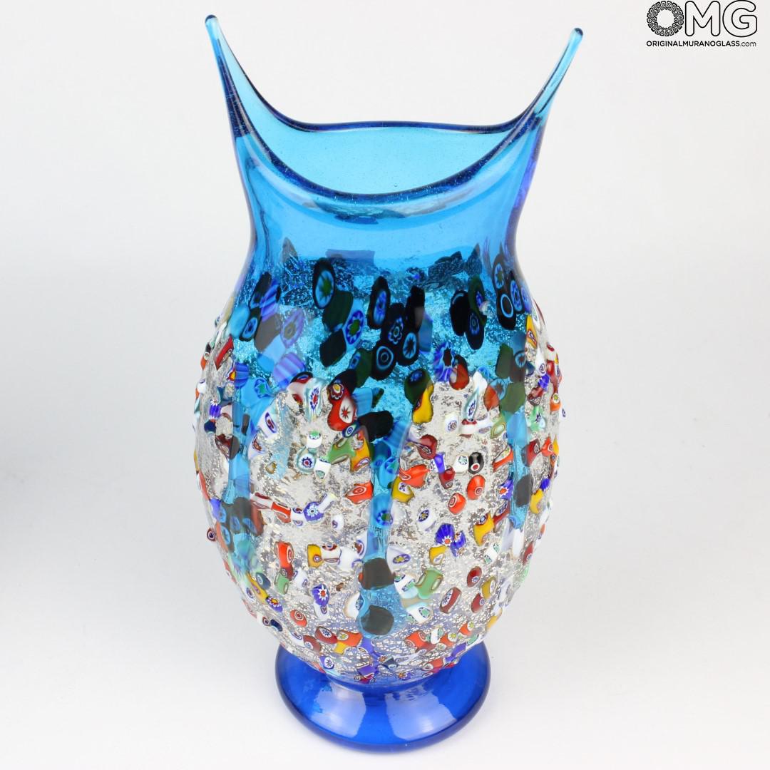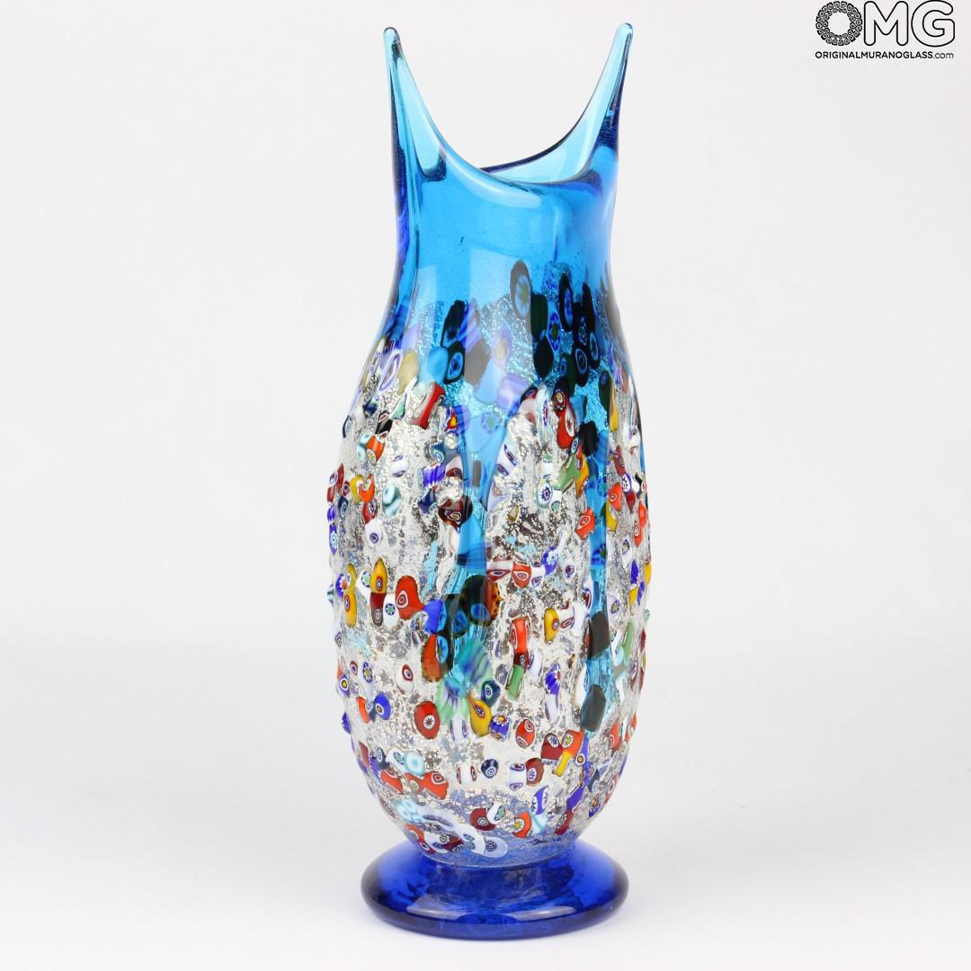 Orchidea Light Blue - Flowers Vase - Murano glass Millefiori