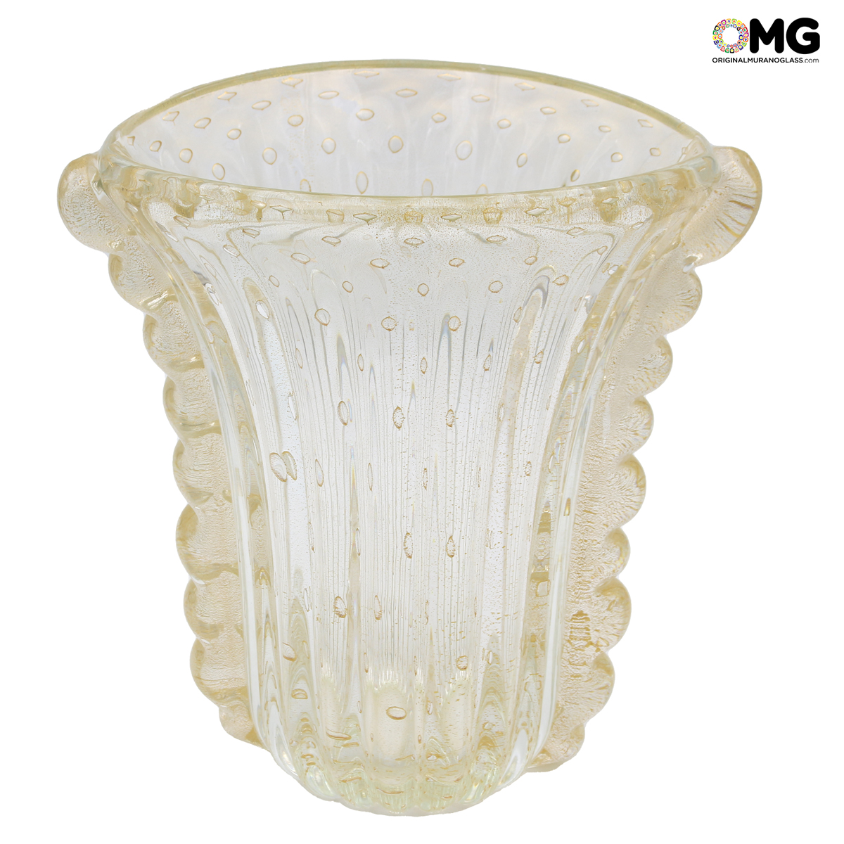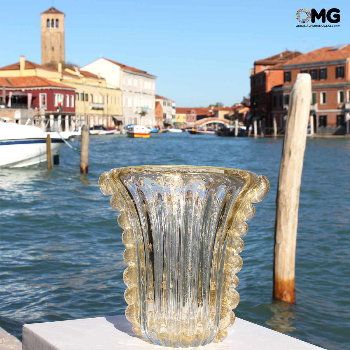 Luxury handmade venetian vase with the famouse blowing technique, realized in original Murano Glass with real gold leaf available in three dimensions.