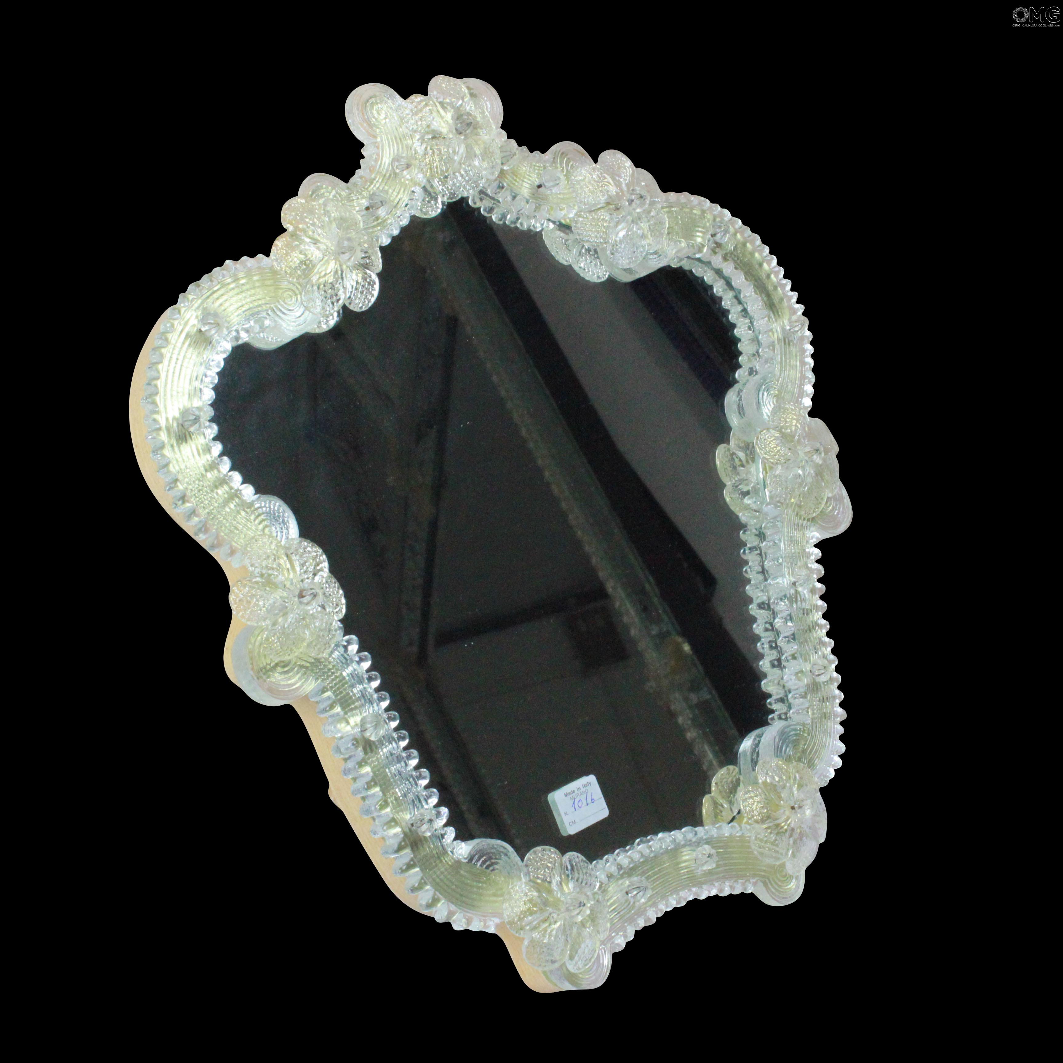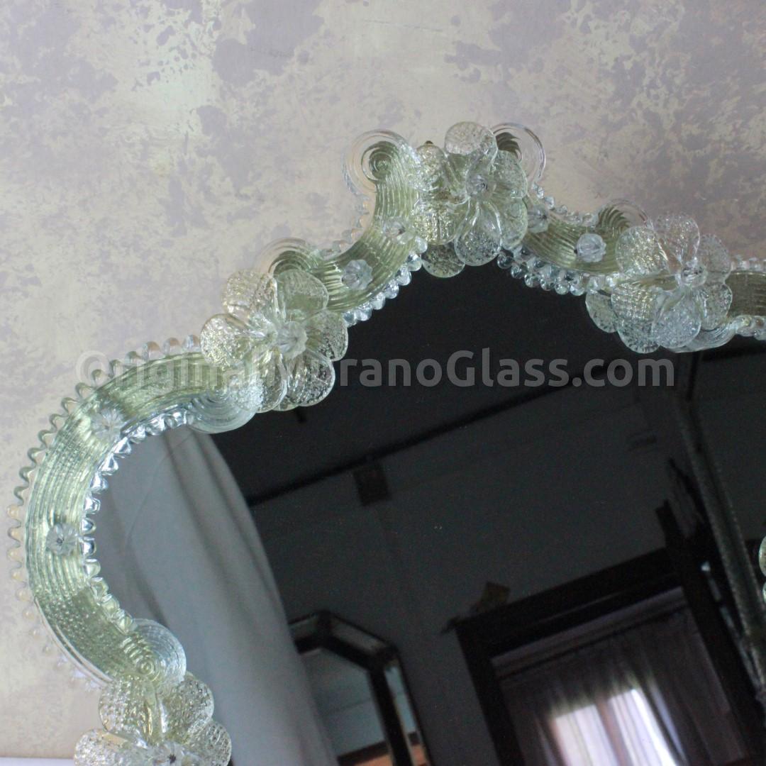 The frame mirror consists of flower and leaves decoration made in authentique Murano glass.