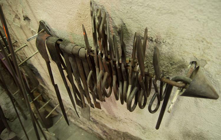 The tajòl, a kind of knife with a square tip used to interact with the vitreous mass aiming at shape it.